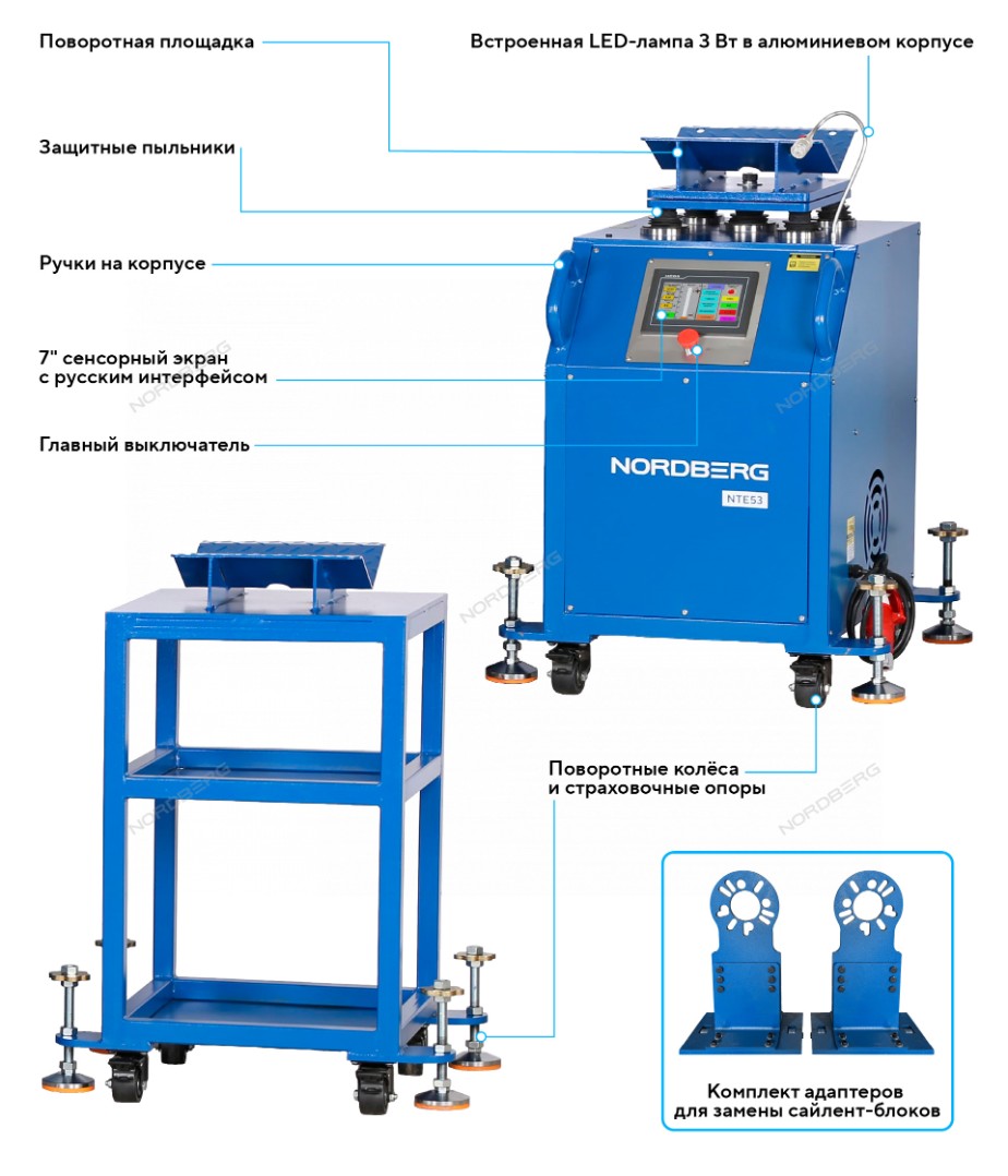 Люфт-детектор для диагностики подвески с поворотной площадкой и дисплеем Nordberg NTE53 характеристики