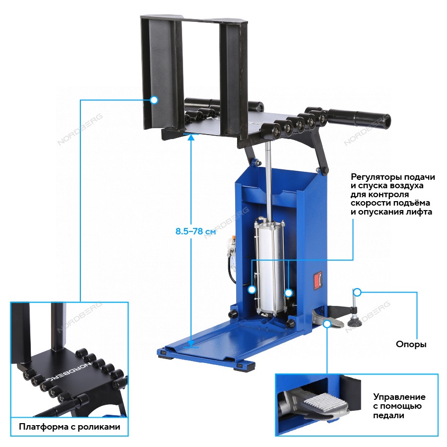 NORDBERG NTL20 — пневматический лифт для подъёма колёс. Применяется в автосервисах и шиномонтажных мастерских для облегчения монтажа и демонтажа шин.