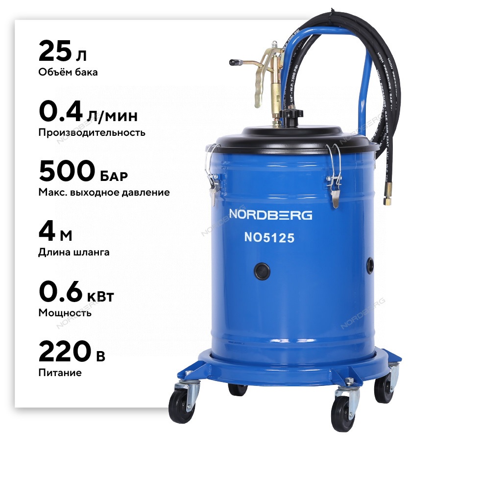 Установка электрическая для раздачи густой смазки с баком, 25 л Nordberg NO5125 характеристики