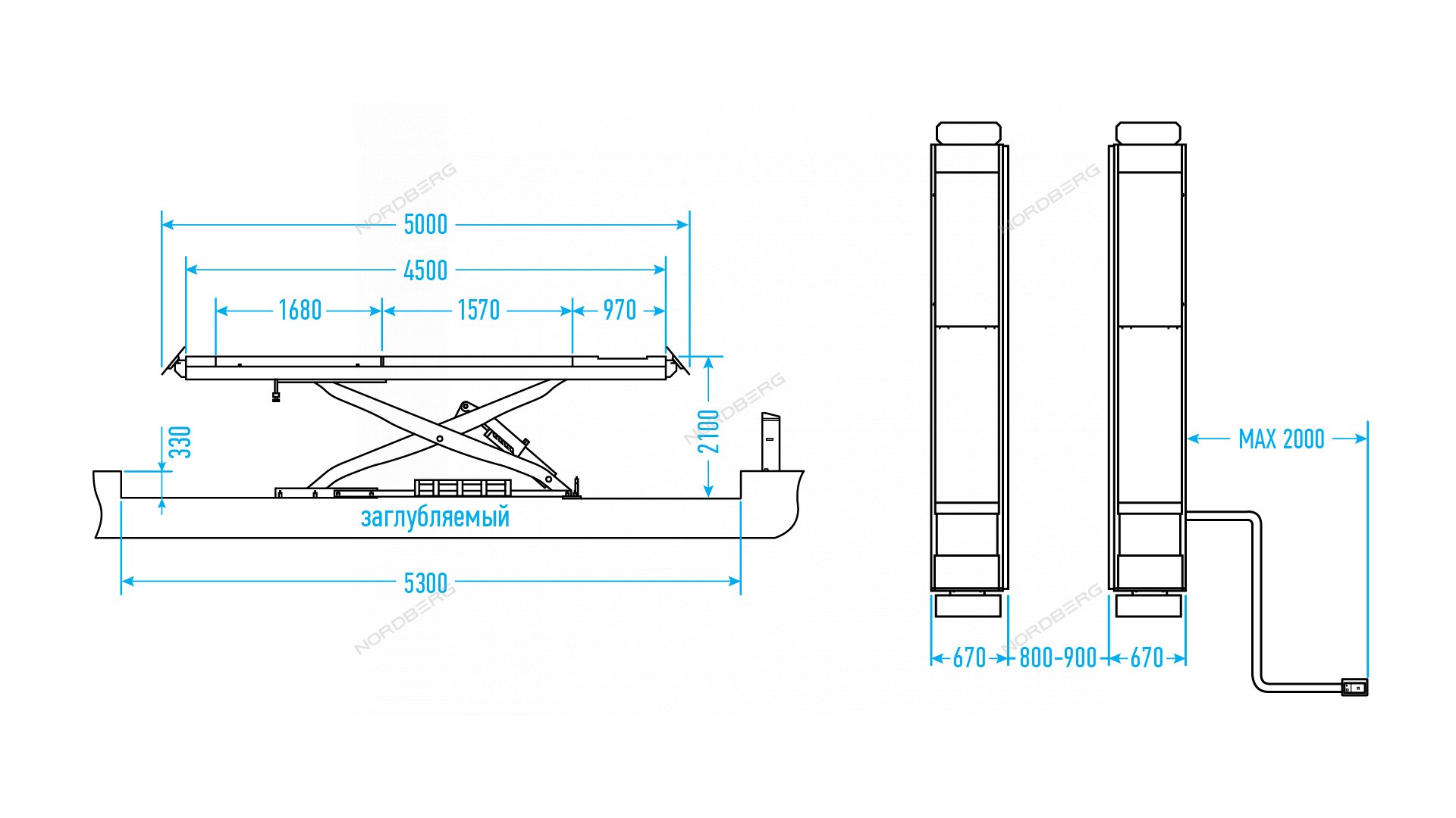 Ножничный подъемник для сход-развала 5,5 т, 380 В, 2 уровня Nordberg N635-5,5G_380_H